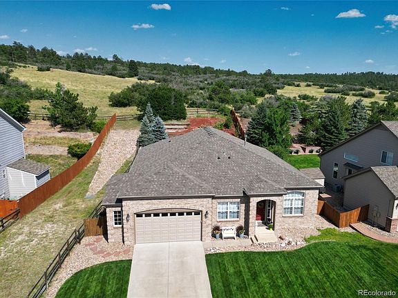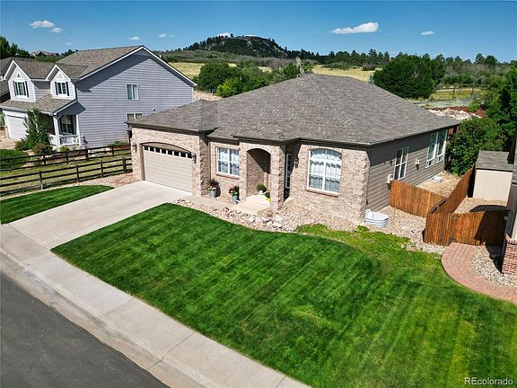 Welcome to this stunning, updated ranch-style home nestled in the desirable Metzler Ranch subdivision of Castle Rock. Just minutes from the vibrant downtown area and premier shopping destinations, this residence offers proximity to parks, outdoor venues, and scenic hiking and biking trails, providing an exceptional lifestyle. This exquisite home features 3 bedrooms, 3 bathrooms, office, and encompasses a total of 4,645 square feet. Recently renovated with meticulous attention to detail, the kitchen is a true dream, boasting high-end cabinetry with deep pot drawers, luxurious "Cambria Quartz" countertops, top-of-the-line stainless steel appliances, an induction cooktop, and a versatile five-in-one microwave convection air fryer combination. The main floor is adorned with new luxury LVP flooring, complemented by upgraded trim, fresh paint, new lighting, and hardware throughout. The powder room and guest bath have also been elegantly updated. Beautiful high-end window coverings, including plantation shutters, enhance the home's aesthetic. Exterior improvements include a newer roof (class-4), gutters, and exterior paint. A large backyard patio extension was added, complete with a full outdoor kitchen that overlooks a meticulously maintained, and landscaped backyard with views of open pasture behind the neighborhood. Stay comfortable year round with a whole house fan, central air, and central heat. Recent additions include a new water heater, and a radon mitigation system. The oversized 2.5 car garage features epoxy flooring, while the open basement offers 2,318 square feet of unlimited potential for customization. The mature, lush landscaped yard is equipped with an automatic irrigation system, ensuring a green and inviting outdoor space. Discover the perfect blend of luxury, comfort, and convenience in this exceptional Castle Rock home.