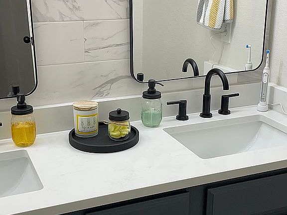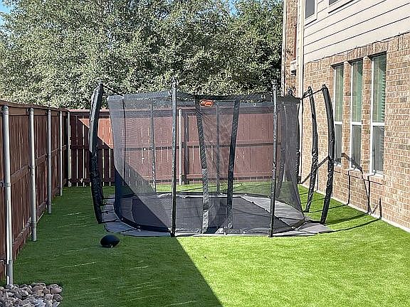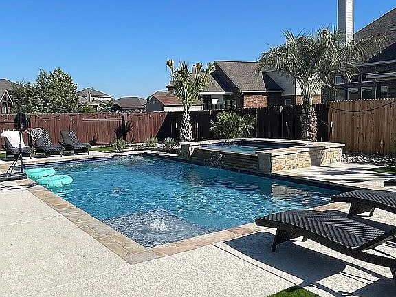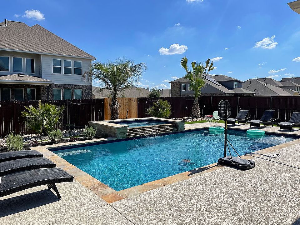 Home has an in ground pool with attached hot tub. Backyard is all low maintenance turf with rock along the fence. There are also solar panels on the roof which was replaced in 2022.