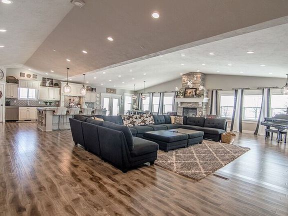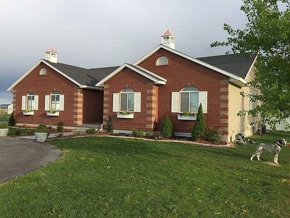 SPECTACULAR is the way to describe this AMAZING home! It's gorgeous! A spacious entry and beautiful formal sitting room, with access to the Master bedroom, two bedrooms, 1 full bath and 1 half bath. The master bedroom has a beautiful 5 piece en suite bathroom: 2 sinks, toilet, huge tiled walk in shower with multiple heads, jacuzzi tub, custom cabinets. A set of french doors, leads to a MASSIVE family room, dining area, and gourmet kitchen. This room is 1600 sq ft. Perfect for entertaining & cooking. Custom white cabinets, a huge island, with a zinc top, granite countertops, gorgeous wood looking laminate floors, an impressive stone hearth, with a thick white wood mantle. Windows surround the entire room, letting in a lot of natural light. Heading downstairs, a designated theatre room with wet bar, and projector will give you the feeling of a night out at the movies. Another gorgeous fireplace makes a statement in the downstairs family room. Two more bedrooms follow, and a full bath. There's also a craft room and office. Also downstairs a luxurious in home gym, with laminate floors, and giant mirrors, there's one more elegant bedroom, with walk in closet and full bath. 3.7 acres with water shares and a nice large shop. Asphalt drive & white vinyl fencing around perimeter.