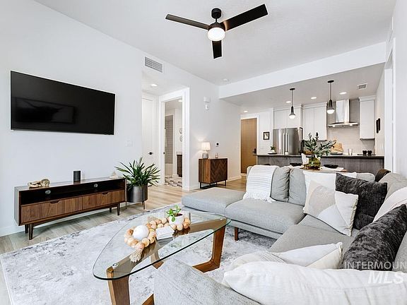 Welcome home to the Haystack condominiums, which provide a serene backdrop for your everyday living. Whether it's your first home or a down sizer opportunity, condo living is great for a lock and leave, low maintenance lifestyle. This 2 bedroom 2 bath low luxurious condo, equipped with a induction stovetop, washer/dryer, refrigerator and private walkout deck on the main level is quick and convenient. Enjoy the luxurious amenities of the community, including large game room, outdoor barbecue kitchen, dog & bike washing station, a refreshing pool, extensive walking trails, and access to local shops. Experience the perfect blend of nature & modern living. Outdoor enthusiasts will relish the nearby Lucky Peak Reservoir for boating and fishing.The new outdoor pool is great for cooling off with friends or basking in the sun and a private corner storage room offers more room than other units.