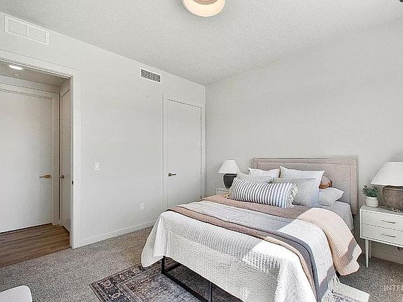 First floor unit features one bedroom and one bathroom. Fully Furnished! Utilities Included! Near Micron Technology and Meta Data Center! All the latest colors and materials including tile bathroom floor, walk in tile shower with glass enclosure, quartz countertops throughout, Pella windows (window coverings included), Bosch appliance package (including refrigerator and washer and dryer), acoustically engineered construction for sound reduction. Unit comes with one assigned covered parking spot and one interior assigned bike storage space. Building features roof top deck, social room, dog wash station, bike wash station and pool access, located near parks, trails, greenbelt, minutes from BSU and much more! Completely furnished unit. All utilities are included in price of rent. No smoking or vaping allowed. No pets allowed.