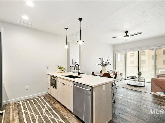Open Saturday 12-3pm! Sun soaked 2 bed 2 bath unit! The "Taper" is situated in highly desirable NE Boise. Upon arriving at the Taper you will see snow capped mountains to the north & the Boise River to the south. A secure fob access key will allow you inside the designer lobby. An elevator will take you to the second floor where you will find Unit 208. As you enter you will be greeted w/natural light & the peace & quite of an acoustically engineered building. Tall windows & ceilings soar nearly 10', & a 12' sliding glass door will allow you to soak in the open bright mini city vibe. Large bedrooms, full appliance package, & quality materials in this classic modern loft will impress! The roof top deck & lounge area are available for Taper Residents. Relax around fire pit, play pool, BBQ while soaking mountain views, watch the game around the fire place or outside w/foothill backdrop, host a rooftop dinner, enjoy the pool around the corner, grab your bike from the indoor storage space for a greenbelt ride.