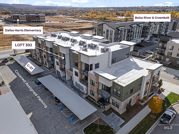Your Mountain-Urban Retreat Awaits! Welcome to Residence #302, top floor of THE TAPER at Harris Ranch Lofts. This sleek studio condo offers stylish finishes, premium amenities & a prime location off the corner of Warm Springs Ave & Park Center Blvd—your gateway to the best of Boise, both inside & out. With contemporary finishes thru-out, this condo features tile bathroom floor, a walk-in tile shower w/glass enclosure, quartz countertops, Pella windows w/included window coverings, & Bosch appliance pkg (incl refrigerator + washer/dryer combo unit). The acoustically engineered construction ensures sound reduction for added comfort. Enjoy stunning views of the Boise Mountains from your private balcony, all while being just minutes from hiking trails, biking paths & vibrant energy of downtown. Includes 1-assigned cov'd parking space & 1 indoor bike space. Residents have access to rooftop deck w/panoramic views, social room, dog wash + bike wash stations, and pool. Ideal balance of comfort, style & accessibility.