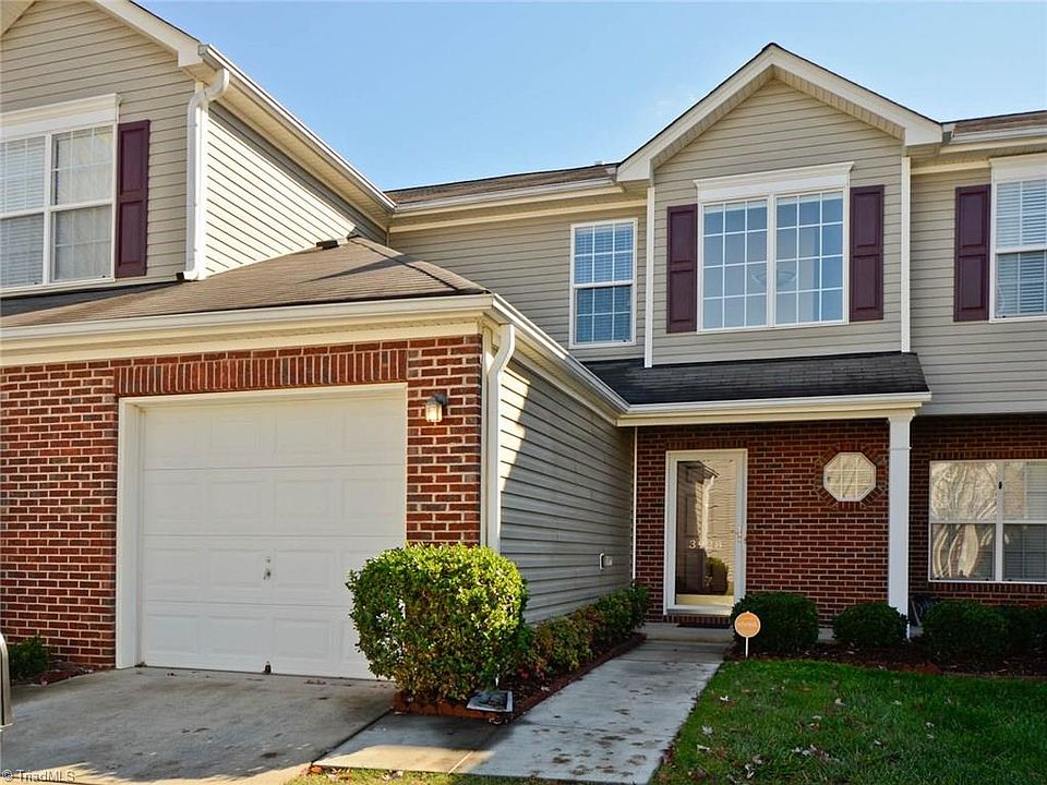Move in ready townhome in Southwest Guilford school zone. Conveniently located near shopping, restaurants and schools with quick access to major roads. Open floor plan. Wood, tile and carpet floor coverings. Gas log fireplace. Kitchen appliances including side by side refrigerator to remain. Pantry. 2 bedrooms on second each with private bath and good closet space. Laundry on upper level. Half bath on main. Attached 1 car garage. Privacy fenced patio area. Storage building to convey. Low HOA dues.