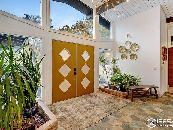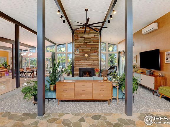 Welcome to the best of both worlds; country living but close to favorite amenities. This 1.69-acre homestead is a fully custom home with a unique mid-century modern feel, remodeled in 2019 with all new mechanicals, plumbing, electrical systems, & more. This A-frame ranch boasts 4 bedrooms, 3 baths, and 3,034 sq. ft. of open-concept living.The great room features a stunning floor-to-ceiling stone gas fireplace and tongue-and-groove ceiling. The chef's kitchen includes a large island, quartz countertops, soft-close cabinets, GE Cafe appliances, and induction cooktop. Expansive views pour in through a wall of newer Anderson windows, while 2 sliders (one 12') open onto the yard and patio for a seamless indoor-outdoor dining experience. The primary suite, located privately away from other bedrooms, includes a spacious bathroom with a custom curbless shower, and a private patio. The attached ADU offers an additional 808 sq. ft. with 1 bedroom, full kitchen, two 3/4 baths, LR, a combo washer-dryer, potential sauna space, and 2 decks-one on each floor-providing mountain views from the upper deck. The insulated, heated, and oversized 1,429 sq. ft. 3-car garage includes a flex space with water, gas, and a separate entrance-perfect for a home office or business. The garage has been converted to accommodate a lift & features a mechanic's pit, EV charging, and wall-mounted ultra-quiet garage door openers. There are storage areas throughout, several utility door entrances and even a 4th small bay for a motorcycle or ATV. This peaceful horse property also features a loafing shed, chicken coop, storage shed, peach orchard, greenhouse, a 16'x32' above-ground pool (with heater, upgraded pump, and robot cleaner), a sand volleyball court, and mature trees throughout. Properties like this-unique and situated in unincorporated Boulder County with no HOA-are rare. Don't miss your chance to see it today!