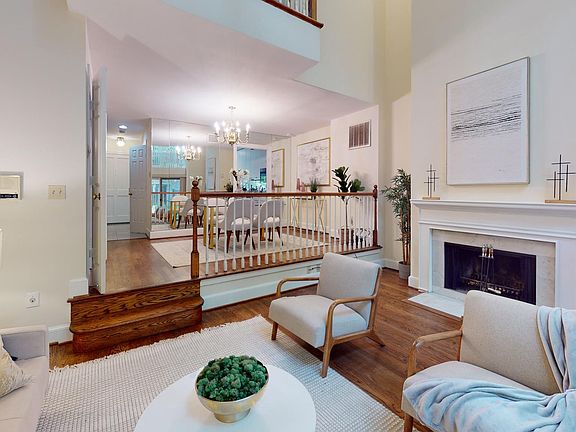 Welcome to 3928 Georgetown Court NW in coveted Hillandale! This immaculately cared for townhome features a two-story living room, three bedrooms, three and one half bathrooms, an eat-in kitchen, loft space, and so much more on four finished levels. The main level boasts sleek hardwood floors in an open concept living room and dining room with a wood burning fireplace, and large windows. The gourmet kitchen features ample cabinetry, stainless steel appliances including a double wall-oven, and countertop seating. A generous sized powder room and coat closet complete the main level. The second level features a loft space, large primary bedroom suite with a walk-in closet, and generous bathroom. On the third level, two equally large bedrooms with custom closets, hallway closets, sky-light, and a large bath featuring a tub and steam shower complete the upper level. The lower level features a full bathroom, bedroom, laundry room, and one car garage. Outside, enjoy a private patio overlooking beautiful tree top views.