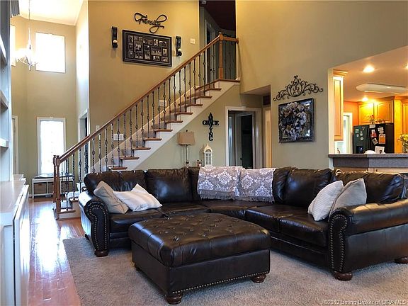 This 4bd, 2 1/2 ba home sits in a quiet cul-de-sac, on .828 acres & loaded with details! Foyer opens into a 2 story great room with a new stone wall gas fireplace (2018),new custom built-ins (2018) and coffered ceiling! First floor Master Bedroom features beautiful French doors and coffered ceiling, luxurious master bath with heated floors, and walk-in closet! Open eat-in kitchen with an abundance of cabinets, solid surface counters, and full appliance package. Climate controlled sunroom, personal work out room and media room with full wall projector and leather media chairs, Rec Room/Man Cave and outdoor firepit! If you have pets this home already has an Invisible Fence around the entire front and backyards (each individually zoned) and it was also zoned around the firepit area as a bonus! Extra features include open wrought iron staircase that leads to three bedrooms upstairs, grilling deck, lower level garden garage, newer light fixtures, custom blinds, furnace in 2016, and storage galore! Centrally located just minutes to Highlander Point, Floyds Knobs, Greenville, or Georgetown and only 12 minutes from Louisville! It sits in beautiful Highland Lake Estates with lake access for fishing, canoeing, walking, along with tennis and basketball courts located within walking distance from your backyard! One year home warranty! One of the sellers is a licensed real estate agent. Schedule an appointment today!