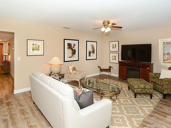 Over 55 community Renovated 3 bedroom/2bath cottage home in a quiet 55+community. Two of the bedrooms have a queen bed and the third bedroom has a full bed. All rooms are beautifully appointed for maximum comfort. Flat screen Tv in living room and bedrooms. Club House with heated pool and exercise equipment. Take a walk around the lake and enjoy the park like setting. Public golf course is adjacent, so bring your clubs. Very close to shopping centers, dining and entertainment. The beach is a 20 minute drive. Book now. 1 month minimum stay. 250 dollars cleaning fee is non refundable Minimum credit score is 675 Short term vacation rental fully furnished Screening By HOA prior to leasing