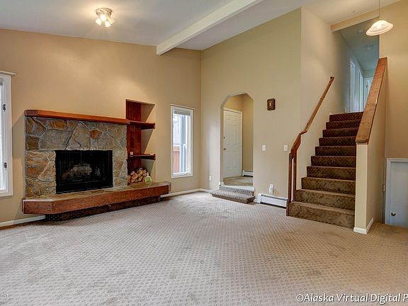 Recently remodeled from top to bottom! Newer kitchen appliances, lighting, and bathrooms. 3 bedrooms, 2 bathrooms, 2 car garage with beautiful mountain views. Next to Chugach Foothills Park in a great neighborhood. Vaulted ceilings, FP, master has a walk-in closet and private bathroom. French doors off dining area lead to a large fenced yard. Pets on approval. 1 year lease.