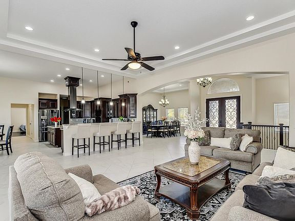 This gorgeous Custom Built 6 bedroom, 5.5 bath on a 1 acre lot features masonry stone and stucco exterior, a tiled roof, three-car garage, one owner home that has been meticulously maintained. As you arrive you will love the spacious corner lot, large circle driveway with plenty of parking, great front entry and more. Inside you will immediately appreciate that high end finishes throughout such as beautiful large tile flooring, and open concept floor plan! The formal dining room is open to the kitchen and living room allowing the cook to never miss a conversation! The kitchen has all of the features you have been searching for and felt you would never find with granite counter tops, custom cabinets, tons of countertop space, island with prep area, and additional eating bar and walk-in pantry. The master suite is 22 x 14 and offers hard wood flooring, large walk-in closet, HUGE master bath complete with both a soaker tub and walk in shower! Every bedroom has their own private or semi private bath, custom flooring, and large closets. No need to worry about carrying your laundry, the oversized laundry room includes granite and custom cabinets, wash sink, and more folding area. Basement has a - wait for it- formal entry way that perfectly frames the walkout. Living area is 27x20 with room for gaming, family, and even a full wet bar with more custom cabinets, granite, wine fridge and more. There is a fully finished area that can be a theater. 2 bedrooms with a jack and jill bathroom between the bedrooms. Don't worry about storage, there is a true storm room and a very large finished storage area. This home has everything on the inside--- and outside - Oversized 3 car garage on a beautiful corner lot. No maintenance roof and custom block, stucco and concrete work on exterior. Although RV parking is available, RVs must be parked within a structure and free from view of the neighborhood.
