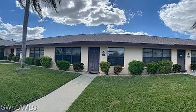 Welcome Home!! Take a look at this little gem in Cape Coral. As you walk in you will notice how quaint and cozy this 2 bedroom, 2 bath condo is. Consisting of an bright open living and dining room. This condo features hurricane shutters, newer AC, new Roof (2019), lots of storage space and nicely sized bedrooms. There is an additional 164 sq.ft. of a window enclosed Lanai off the main bedroom sliders, making an additional sitting area for morning coffee or tea with a landscaped view that is also accessible from the second bedroom. The main bedroom has its own ensuite with shower while the second bedroom includes two large walk-in closets for clothes and or storage. Laundry is in the spacious closet on the Lanai. The small kitchen has a tall built-in pantry plus all major appliances. Behind the unit is the landscaped walkway leading to the clubhouse and pool. Your assigned parking and mailbox is just a few steps from the front door. This home is a short drive to Cape Coral Parkway for shopping and restaurants. Minutes away from the Yacht Club Community Park, Veterans Park, Jaycee Park and Four Freedoms Park as well. Or stay close to home and socialize at the clubhouse and pool.