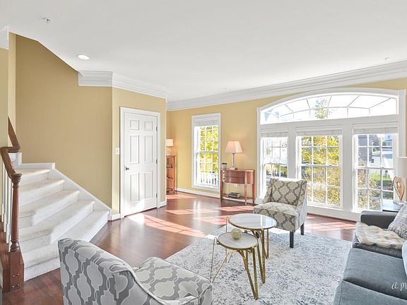 This NV built brick townhome located in the heart of the Villages of Urbana is a must see. As you enter the spacious foyer you'll recognize the open the floor plan. The foyer shares space perfect for an in home office or flex space. The main level Great Room features a gas fireplace and detailed crown molding and chair rail trim. Double windows and paned glass door, allow views and access to the fully fenced manicured lawn and garden with access to the 2-car detached garage. Upstairs, tons of natural light floods the space on the main level featuring gleaming hardwood floors in the formal living, dining room and kitchen. Enjoy food prep in the gourmet style kitchen with LG stainless steel upgraded appliances, gas cooktop, counter depth refrigerator, and granite countertops. The bump out in the kitchen is perfect for an extra sitting room and shares access with the full sized deck. Retreat to the third floor and enjoy the spa like bathroom, walk in closets and spacious owners suite. Bedrooms 2 & 3 share a hall bath with upgraded tile and flooring. Fantastic opportunity to own in a Blue Ribbon school district, with easy walk to parks, neighborhood shops, grocery store, library and easy commuting to I-270 and 70.