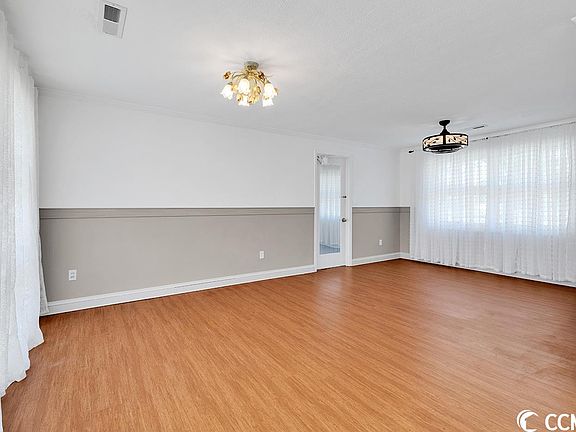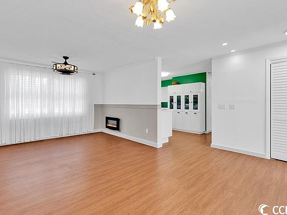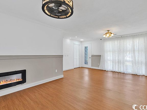 New Roof completed 3/10/2024. Awesome location with golf cart ride to ocean and all the Market Common restaurants, bookstore, famous dog park, Grocery shopping. Enjoy updated kitchen looking to rear yard with windowsill. Open the rear door to kitchen as this is the Model D floor plan. All appliances included with window treatments. Dining area accented with beautiful tulip light fixture/living room fireplace in wall. This home upkeep by owner occupied owner for years. Easy one level floor with attached carport with storage area. Spruce has mailbox cluster on same street. Come enjoy this beach living.