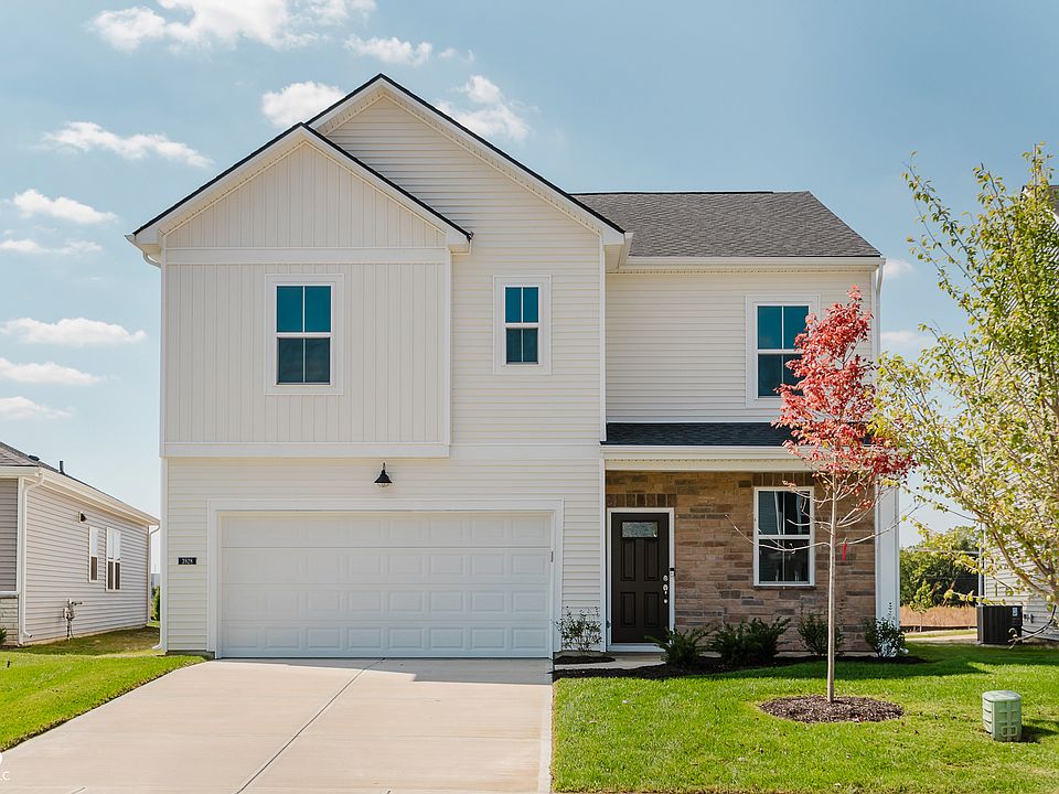 Welcome to the Lowry floorplan-where modern design meets everyday functionality. This spacious two-story home features 4 bedrooms, 2.5 bathrooms, a versatile loft, and a 2-car garage. At the heart of the home, the stylish kitchen showcases Stone Gray cabinetry, Aruca White quartz countertops, and stainless steel appliances including a gas range, creating a beautiful and functional space for cooking and entertaining. The open-concept design seamlessly connects the kitchen to the dining and living areas, while a sliding glass door leads to a patio that expands your living space outdoors. A private flex room with doors offers the perfect spot for a home office, study, or playroom. Upstairs, all four bedrooms are thoughtfully positioned around the loft, providing the ideal balance of shared gathering spaces and private retreats. The Owner's Suite features a walk-in closet and en-suite bath, while a convenient upstairs laundry room makes daily routines effortless. The Lowry floorplan blends style, comfort, and flexibility to fit your lifestyle.Welcome to Highlands in Whitestown - where small-town charm meets everyday convenience. Ideally located with easy access to I-65, this vibrant community is just 10 minutes from the Golf Club of Indiana and offers a short commute to the new LEAP District, making it perfect for professionals and families alike. Future amenities are designed with lifestyle in mind and will include a community pool, playground, and two pickleball courts, giving residents a chance to relax, play, and connect. Spend your weekends exploring the local parks-Panther Park, Main Street Park, and Lions Park are all just a short drive away. Minutes from the Anson Shopping District and close to all the excitement of Downtown Whitestown, where you'll find local restaurants, breweries, and community events. Highlands offers the perfect blend of recreation, convenience, and community-a place you'll love to call home. Photos may be of similar model.