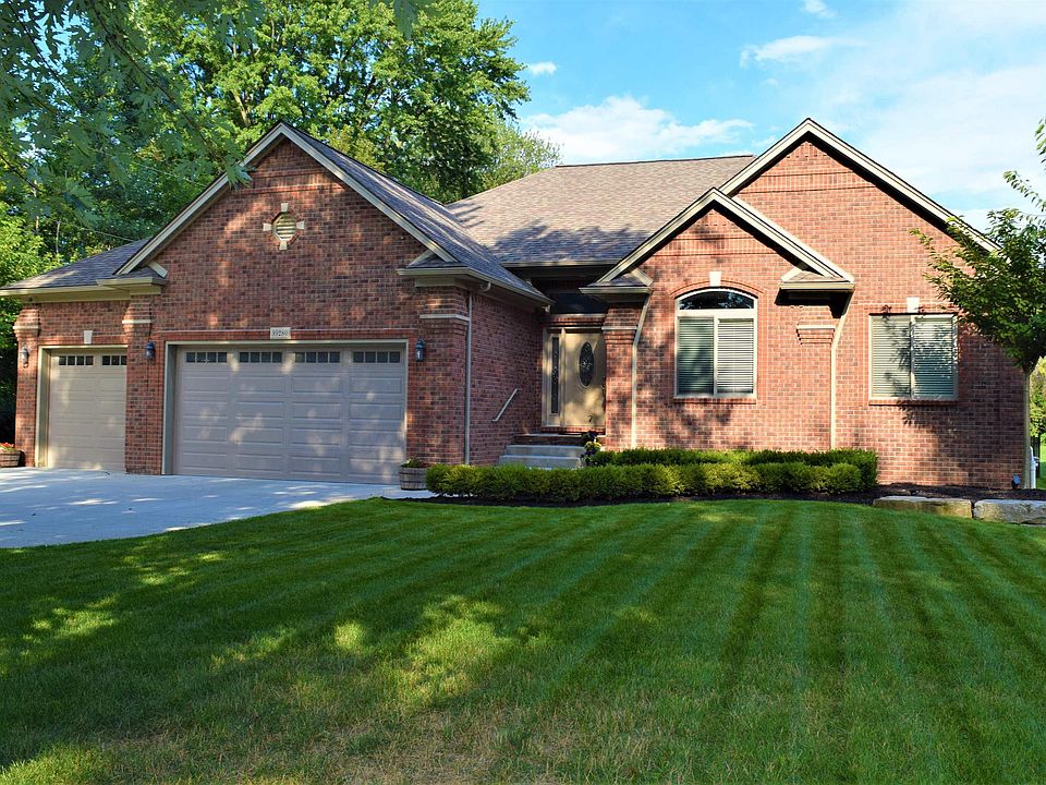 SPECTACULAR NEWER CUSTOM RANCH! 2100 SQ FEET W FULL BASEMENT ON .45 ACRES! Cathedral & 9 foot ceilings, Beautiful brick detail w vinyl trim for maintenance free exterior, Exposed aggregate patio w built-in firepit, fully fenced yard, main floor primary suite, home office w French doors, wood grain ceramic floors, Granite counters throughout, 3 car garage, new landscaping & wired security cameras stay! This home is gorgeous and move in ready!