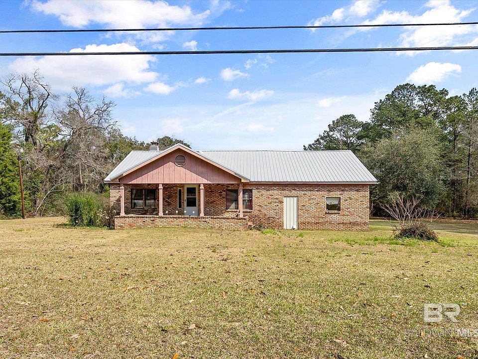 3.6 acres and over 2500 sq ft in Baldwin Co. under $250KBeautiful level lot with room for whatever your heart desires. 3.6 unrestricted acres provide privacy and room to spread out. Bring the animals or enjoy the deer that frequent the pasture. This property boasts a brick house just waiting for you to call it home. Bring your imagination and make this large home your very own sanctuary. As you enter this home to a true Dog Trot hallway that divides six equally sized rooms. On the west side of the house, you'll find the Living Room, Dining Room with gas fireplace and an Open Kitchen with split brick flooring. On the North side of the house are 2 bedrooms and a Jack and Jill bath. At the end of the hall, step down 2 steps into the tremendous Great Room with a full Bath. This room would make a great Primary Suite with very little work. Full of windows and bright light, it is also the access to the covered patio in the back of the home. Parking is available next to the patio and hidden by a privacy fence. There is also a garage on the North end of the home that has been closed in to provide for a large Utility room with Washer and Dryer as well as an attached Storage room. As if this isn't enough, there is a stairwell in the main hallway that leads to an upstairs that is entirely finished with full bath, bedroom, sitting area, and extra-large bonus room that could serve as an extra den or even storage. All of this on county water and gas, has a 5yr old roof, and a 2 yr old gas water heater. Seller is offering a Home Warranty at closing. Don't miss this one because it will not last long!! Buyer to verify all information during due diligence.
