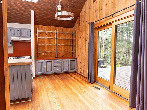 - Features: Deck, Sliding Doors, Vaulted Ceiling, Wood Stove