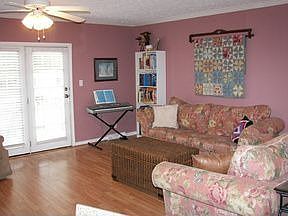 Large rocking chair covered front porch. Palm Harbor home with sheet rock walls. Cozy wood burning fireplace in living area. Spacious master suite with his and her bathrooms connected by huge walk in closet. Stand up shower and soaker tub. Split bedroom plan. Open living area. Large ktichen with eat in area that is as large as dining room Dining room is off of living area and could be used as computer or reading area. Deck off back overlooks decorative wood fenced yard and wooded area behind that. Laminate floors in liviging areas and ceramic tile in kitchen and baths. Easy commute to Wilmington. $99,900