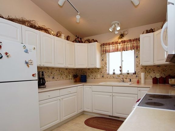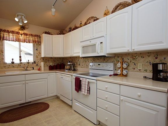 Pride of ownership is evident in this one level ranch home with great views. Your future home offers 2 bedrooms and a master retreat complete with walk in closet. This one owner home has a comfortable living room with vaulted ceilings, dining area with access to private side patio and a gorgeous kitchen with white cabinetry. Main bathroom and main floor laundry complete this homes floor plan. Other features include fenced park like back yard, beautiful landscaping, new roof (coming in September) and oversized 2 car garage. Welcome home!!