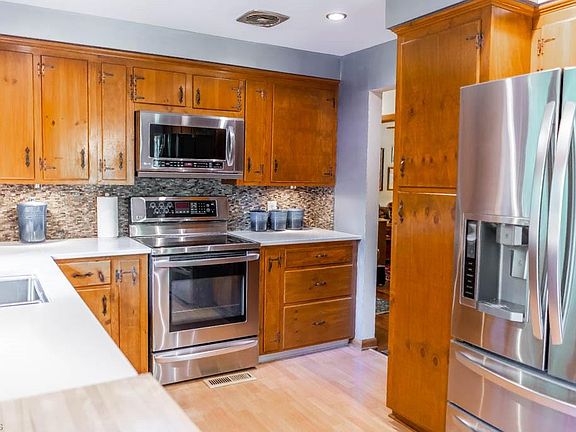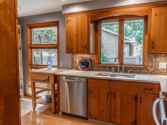 Call or text Listing Agent Jose Medina at 330-605-9185 for a private showing. Breathtaking 3 bedroom, 2 full bath raised ranch on half an acre in Plain! Much larger than it looks! Large windows in the living areas flood this home with natural light. Hardwood floors throughout the majority of the main level. Prepare your favorite dishes in the updated kitchen with stainless steel appliances, quartz counters and a pantry with pull out drawers! Host holiday meals in the formal dining room with a huge picture window. TWO picture windows occupy the lovely living room as well as a fireplace framed by built-ins. Off of the living room, enjoy a fabulous heated and cooled porch that was recently remodeled including brand new windows! Down the hall, there are 3 bedrooms and a full bath. The full bath has a removable linen insert - if removed, the master could access the bath from the walk-in closet. Tons of extra living space on the finished lower level! Down here, enjoy a rec room with built-in shelving, a laundry room with a sink and counterspace for folding, a full bath with a walk-in shower and a family room boasting a fireplace, dry bar with granite counters and walkout access to the 2-car attached garage with storage! Outside, there's a newer driveway and a retaining wall. The picturesque backyard offers a beautiful, shaded paver patio with lush greenery, a shed and a gorgeous wooded yard - very private! Charming home - don't miss out!