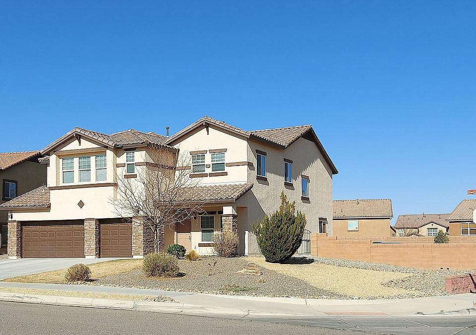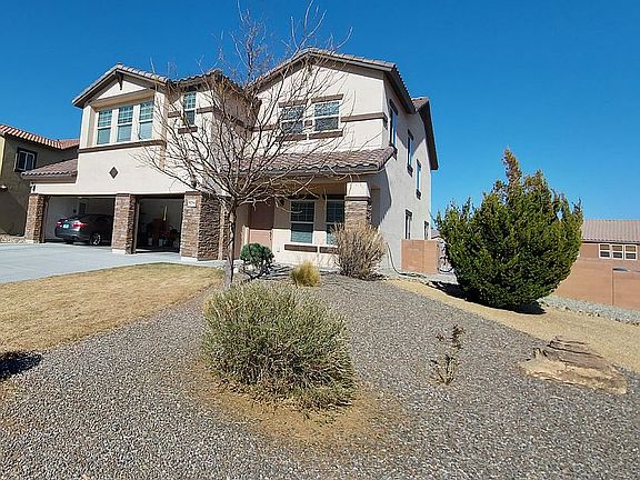 Gorgeous Pulte home located in desirable Loma Colorado subdivision situated on a spacious 1/3 acre corner lot. Home features space for everyone with 4,070sf, 4 bedrooms, 4 bathrooms, 2 living areas, an office, oversized loft and 3 car garage. Great floorplan whose signature is huge space all around with very large bedrooms w/ walk-in closets and ample room for bed and large student's desk. A beautiful tile medallion invites you from the home's exquisite central rounded architectural rotunda into a beautiful open kitchen with new appliances, center island, decadent cherry wood cabinets - paired with dark and rich granite countertops. The family dining space and spacious living area are adjacent and contain an ultra clean, super efficient, wood burning pellet stove for warm cozy family gatherings. There is a 1st floor office or 5th bedroom with easy access to a large bathroom that features a mature minded, safe entry walk-in shower filled with strategically placed safety handles. The upstairs super sized loft offers plenty of room for the - "comes with the home" - regulation sized, cherry wood, ball-in-claw footed pool table! Spacious owners suite with a large private bathroom and relaxing soaker tub, shower and large walk-in closet. Second master/princess suite offers a spacious room with a private bathroom. Backyard is huge and built for entertaining with a gas outlet, ample summer shade and wonderful east facing patio. Take in the mountain views within uncluttered, clean and open landscaping. Several parks, walking trails, Rio Rancho High School, baseball fields, skate park, aquatic center and city library just a short walk away!