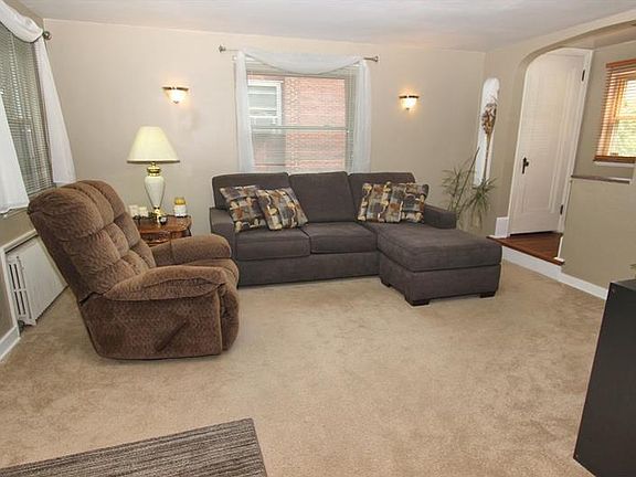 A perfect gem in the heart of Brentwood with superb walkability less than 1/2 mile from Brentwood Towne Center! Great curb appeal and classic charming details. Updated and move in ready with fresh new décor. Beautifully remodeled kitchen (2014) with white shaker cabinets, stainless steel appliances, quartz countertops, tile backsplash, and new flooring. Wall between kitchen and dining room was opened up creating a lovely peninsula with bar seating. Dining Room has newly refinished hardwood flooring and white wainscoating. Brand new bathroom (2107) is stunning with new tile flooring, tile tub surround, fixtures and tile backsplash. Bedrooms have newly refinished hardwood flooring. Hardwood floors under carpeting in LR, steps & upstairs hallway. Front porch that beckons you to relax! Backyard is spacious and gorgeous with a private stone patio. Attached garage with opener. New Windows (2008). Easy downtown commute. On Y49, Y46, & Y1 bus lines. W/O basement is 18x25! Pgh Potty too!