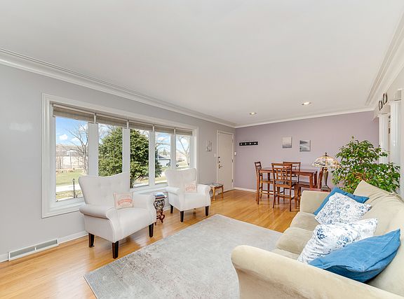 Beautiful, sun filled 3 bedroom 2 bath brick ranch with full, finished basement on an amazing park-like lot. Living room/dining room with hardwood floors & crown molding. Spacious bedrooms, 2 with hardwood flooring & the master bedroom has hardwood flooring under the carpeting. Fully applianced kitchen with ample cabinet space, Corian & butcher block countertops & recessed lighting. Full, finished basement that doubles the square footage of the home has recessed lighting, a large family room, office, full bathroom & utility room with so much storage. Screened porch, deck & breathtaking backyard for outdoor use. Oversized 2 car garage complete with lots of storage & a workbench that will stay. Tear off roof in 2015. Furnace 2013, Central Air 2020, newer appliances & washer & dryer. Prime location close to highways & commuter train, dining & shopping. Schedule your showing today!