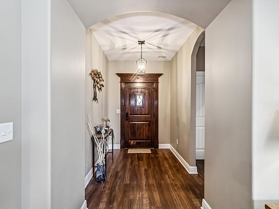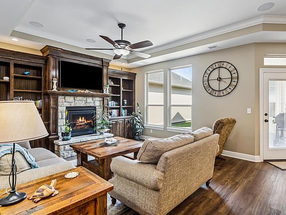 Welcome to your opportunity to own a beautiful, well-maintained home in the adult active community Courtyards at Estancia. This zero-entry home is immaculate, you will think that it is brand new. This custom-built home has beautiful finishes and upgrades. You will be amazed at the inviting comfort and warmth that it offers and the quality of craftsmanship. When you walk up to the beautiful Alderwood front door you will notice the inviting covered front porch. The heart of the home has a living room with incredible built ins around the gas fireplace and the tv. There is surround sound installed throughout with the exception of the guest room and bath. The audio visual equipment and living room tv remain. The home is accented with coffered ceilings and crown molding, LVP flooring and Alderwood doors. The kitchen has a pantry, granite counters and Alderwood cabinets. All kitchen appliances remain including a gas stove top. The dining area is spacious for the holiday gatherings. There is a separate laundry room and a safe room for storms. The home has 2 bedrooms, 2 full bathrooms and a den. The guest bedroom is large with an adjacent full bath. The master bathroom is spacious with a walk-in closet with built ins. The adjoining bathroom is luxurious with a large walk-in shower. There is a large patio with a covered sitting area that can be accessed from the living room or master bedroom. The 3-car garage is oversized with 8’ tall doors and a workshop area with storage. The exterior and yard maintenance is taken care of by the HOA. All you need to do is move in and relax, no honey do list here. Enjoy your leisure time at the clubhouse, swimming pool, pickle ball courts or taking your grandchildren to the playground.