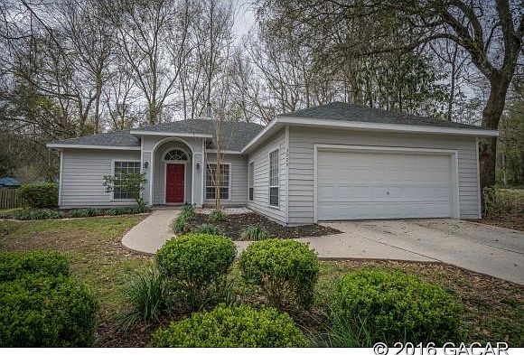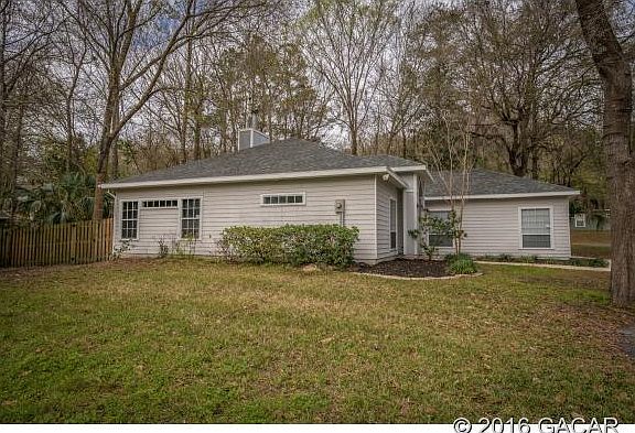 This open-plan, spacious home, is nestled in a quiet and peaceful neighborhood close to UF and in walking distance to shopping, restaurants and movie theaters. There are vaulted ceilings, crown molding, arched doorways, a fireplace, study, split bedroom layout with large kitchen and breakfast area overlooking a private fenced backyard and 2 car garage - Truly an A+ home. New HVAC system installed in 11/2022.