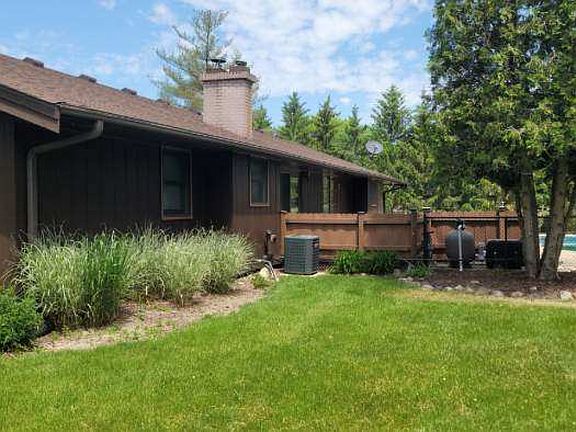 3 bedroom 2 bathroom spacious ranch situated on. A one half acre corner lot in quiet country setting. Fully finished basement with wet bar, bedroom and walk -in closet along with ample storage outside of finished area. Basement also has electric fireplace in living area. Beautiful 15x11 screened in porch with new canvas all weather roll down shades overlooking 20,000 gallon in ground heated pool with 8x8 pool house. Pool has new liner, pump and sand filter. It also features a new 29.5 x17 composite deck for poolside entertaining. Large 12x16 Barn for xtra storage . Inside features 3 large bedrooms and 2 full baths. Family room with full brick gas fireplace, large living room, eat in kitchen with breakfast bar and first floor laundry. Kitchen, dining and entryway with wood plank flooring. 2 car garage with new overhead doors and garage door openers . New roof and decking, new central air and newer circular driveway