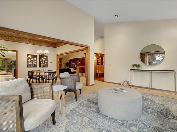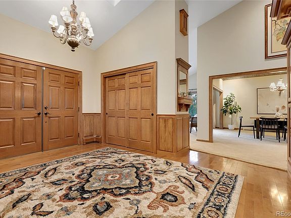 Luxurious Meadow Hills oasis! Boasting over 6,000 square feet of impeccably designed living space, this home promises a lifestyle of unparalleled comfort & sophistication. From the moment you step through the grand entrance, you are greeted by an ambiance of refined opulence. High ceilings adorn the main level while custom woodwork & built-ins create an atmosphere of character. The sunny & inviting front room seamlessly flows into the formal dining area. The chef's kitchen showcases stainless steel appliances, granite countertops, & an abundance of cabinet space. This area also offers eat-in table space framed by charming bay windows & a delightful window seat, allowing you to savor your morning coffee with a view of the beautiful backyard. The spacious family room is a delightful space with skylights that bathe the room in natural light. A cozy reading area with built-ins creates the perfect spot to unwind, while a brick fireplace adds warmth to the room. Double doors open to the lavish primary suite, granting private access to the backyard. The primary suite is a sanctuary of comfort, featuring a luxury five-piece ensuite bathroom with a fireplace & dual walk-in closets with built-ins. The finished basement is a treasure trove of entertainment possibilities, with two additional bedrooms, a well-equipped office, a wet bar, & a theater room complete with a new projector & comfortable seating. The expansive backyard, sprawling over half an acre, is a private oasis framed by mature trees. A covered patio with ceiling fans invites you to enjoy al fresco dining, while a pergola-covered deck houses a hot tub, ideal for starlit evenings. Enjoy the dedicated play area & relish the convenience of a private sport court. This home offers practical features including a finished & heated three-car garage. Located in the Cherry Creek School District & in a quiet, low-traffic neighborhood, this home creates a haven where you can escape the hustle & bustle of everyday life!