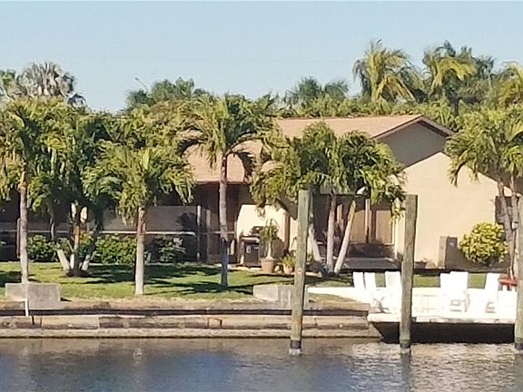Great Location in Savona Neighborhood. Only 8 houses and a couple minutes to River. Huge 200'+ wide big Boat Canal. This is one of the deepest sailboat access canals in the Cape. Well maintained original custom home. 3/2/2 with split bedroom layout. Large vaulted ceiling in great room. Large disappearing sliders bring the outdoors inside. The views of the water from this house are incredible. Over 1900 sq. ft. make for large rooms and walk-in closets in all bedrooms. Great lush landscaping and mature palms with over 50 Christmas Palms. This property is priced to move quickly. Also available is $375,000. Assumable Loan with 3 year ballooned payment.
