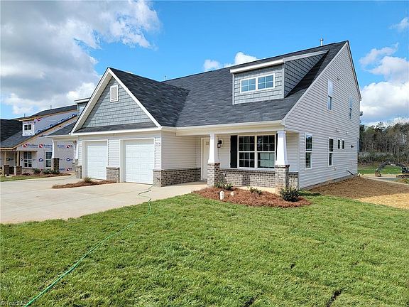 NEW NEIGHBORHOOD - Villas at Strawberry Creek by Windsor Homes! INDIANA floorplan (end unit) with Primary Bedroom on main. Kitchen has grey cabinets, ceramic tile backsplash, blanco matrix quartz countertops and vented gas range. Luxury Vinyl Plank flooring throughout main. Two Bedrooms, Loft and Finished Storage/Office room upstairs. One-Car Garage, Patio with Storage Building. Walking distance to Proehlific Park Sports Center, minutes from Battleground and New Garden shopping, parks and highway access. LOT 40 is almost complete, East facing, estimated ready for close MAY/JUNE '23. Call/text Kate for an appointment to visit. Photos and virtual tour are representative of floorplan, not decorator selections.