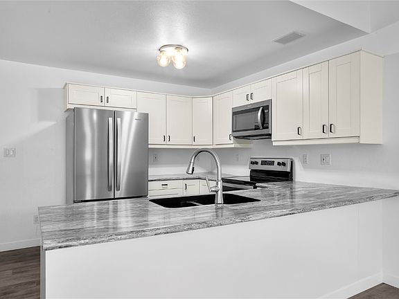 COMPLETELY remodeled 2 bedroom condo! All new cabinets, countertops, flooring, paint, and kitchen appliances. Don't pay the price for new construction when you can have this great place practically brand new. The remodel was just completed. The appliances have never been used. Just in time to enjoy the Fall evenings while resting around the gas fireplace in the living room. Large sliding door in the living room offers great sun light inside or step out and enjoy the patio. Fun, loft floor plan makes this a great new home. It's just waiting for you to move in and make it your own.