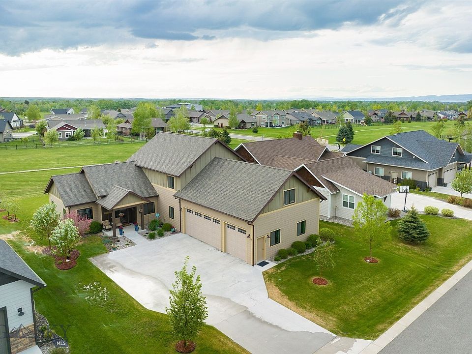 High quality built by Biggerstaff Construction and pride of ownership at every turn! With wood floors, vaulted ceilings, an entertainers kitchen with abundant counter space, double ovens, and huge center island with access to the grilling patio, you’ll want to move right in. This 4B|4B home + bonus room + office + flex space boasts a peaceful main level primary suite with private, tucked-away bath and dual walk-in closets. Open living design with gas fireplace, clad in natural rock anchors the living room with vaulted ceilings and windows on every wall providing wonderful natural light. The upstairs has 3 Bedrooms, 2 Bathrooms and large bonus spaces. Has AC, 3-car garage, and sits on .25 acre with underground fencing, lawn with sprinklers and manicured landscaping. Middle Creek Parklands sets the standard as a wonderful, tightknit community that maximizes Montana's natural beauty giving homeowners approx 60 acres of open space and over 4 miles of maintained trails to explore. With a playground and dog stations, it's perfect for staying active with after-dinner strolls or early morning work-outs. Backing to trails and open space, you'll enjoy all this neighborhood has to offer! Located in the National Blue Ribbon awarded Monforton Elementary School district (K-8), just blocks from the school. Close to all the local restaurants and shops on Huffine and Four Corners area. Middle Creek Parklands neighbors 250 acres of MSU ag farmland to the East and Black Bull Golf community to the North. Easy access to anywhere in the valley, including Big Sky and Downtown Bozeman.