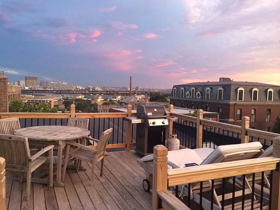 This bright Charlestown penthouse offers original wide pine plank floors, custom molding and beuatiful details throughout. Features include, granite, stainless steal appliances in the kitchen, as well as built-in bookshelves and cabinetry. The second bedroom has custom built-in desk and murphy bed, allowing for a perfect guest/work space. The unit is complete with a private roof deck with incredible panoramic views of Boston.