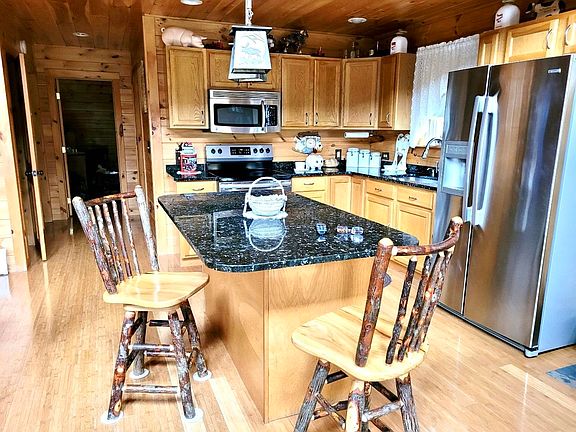 This is a beautiful log home on an acre parcel with paved driveway. A wrap around deck to enjoy nature at its finest. Kitchen has granite counter tops, an island and plenty of fine cabinetry, plus stainless steel appliances. There are wood clad walls and oak hardwood floors throughout the first floor. 2 bedrooms are on the the first floor, and a bedroom suite on the second floor loft with a spa tub and shower. First floor bathroom has a walk-in shower and grab bars. Living room has cathedral ceilings and a main wall with plenty of windows for natural lighting and viewing the natural beauty of the outside while in the comfort of your home. Walk-in entrance on the basement level, which provides a laundry room/utility/furnace room, which also, a new water softener has been added, and two additional rooms for multiple living space opportunities, i.e. rec room, exercise room, office, family room or even a guest room. Another small room for storage is accessible. A good sized utility shed outside the back door will allow for multiple equipment to be stored there. There is, also, a new 20 kilowatt, full-house generator providing security during power outages. Don't let this home get away.