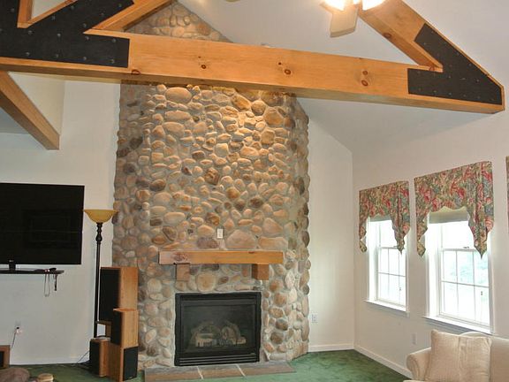 Spectacular views from all windows and deck. New geothermal HP, river stone fireplace and open beams add character to this 2 story home. Offering a walk to ground level. Lower level is plumbed for half bath. 4BR, 2.50BA. Like new pole barn with electric and 2 garage doors.