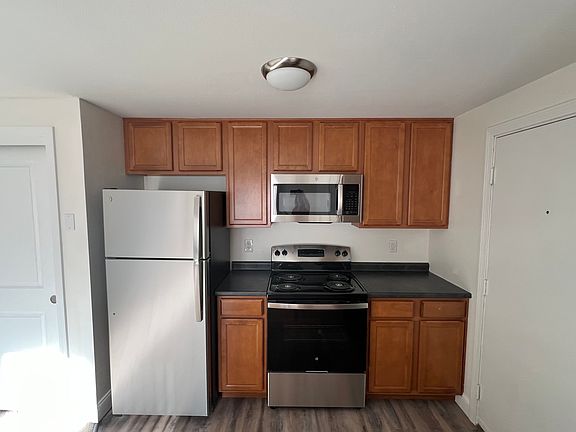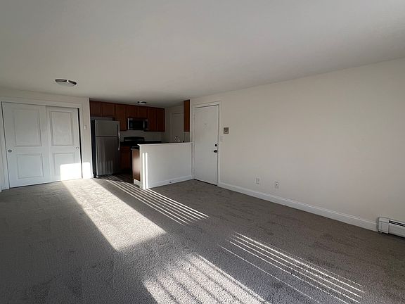This spacious 1 bedroom, 1 bathroom apartment features a large living room, a full kitchen with new ample cabinetry, and new stainless steel oven & microwave. Step outside to your own private balcony perfect for relaxing with your morning coffee or unwinding after work. This apartment also has brand new flooring throughout! Heat, hot water, trash are included, and there's free parking in a private lot located directly in front of the building. Landlord pays for heat & hot water, garbage, snow plowing, and landscaping. Tenant pays for electricity and cable/internet. Must have good credit and good references. There is no smoking allowed inside or anywhere outside on the property.