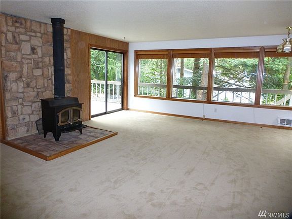 Unique 2076 sq ft daylight basement home offers secluded close to Nature feeling on wooded lot with greenbelt and garden areas. Upper floor has open living concept with access to decks on two sides. Oak kitchen cabinets with appliances.. Free standing wood fireplace and well placed windows for natural light and forest views. Lower level has kitchenette, 3/4 bath and 1 bedroom. SB amenities: Marina, Tennis, Swim pools, Par 3 golf, Private beaches and Community center.