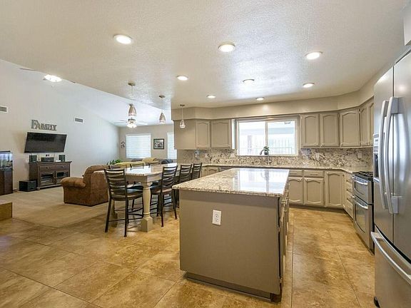 WOW, WOW, WOW!! This amazing home has it all. How about 7 bedrooms (not 10), a den,four baths, an over sized two car garage, 30x40 detached workshop/garage, 22,000 gallon pebble tech diving pool, NO HOA...all on a large, irrigated acre lot.This hard to find property features a beautifully remodeled, expansive kitchen with the highest quality granite counter tops available, tasteful tile, stainless steel appliances, bar, huge pantry, can lighting...Inviting family room off the kitchen has a fireplace, vaulted ceilings, dimmer lighting, and an exit door to the expansive covered patio.The huge, irrigated, back yard features a fenced, 22,000 gallon sparkling clear, custom diving pool with a new pebble tech finish, and lots of large, mature trees, including oranges, lemons and grapefruit. Every man's dream will be realized when you check out that 30 x 40 free standing 4 bay workshop/garage with shelving galore, 12 foot ceilings, and 3 roll up garage doors. And yes there is 220 for those welders and... Check out the cool, 1800 square feet basement with a large recreation/playroom, a full wall with closets for all of the kids toys, etc...There are also three bedrooms and a full bath plus a a walk out patio area that is accessible from two of the bedrooms. If you want storage areas then look no further! In the basement there is a lockable Christmas storage room for Santa's presents and.. There is also an addition larger storage room for...In other words there is definitely storage galore in this home!! For the gardener there is a an above ground, irrigated garden area. Last but not least, all of the bedrooms are very roomy and have large closets. Yes the laundry room is large and has a deep sink. Come see your new family paradise today.