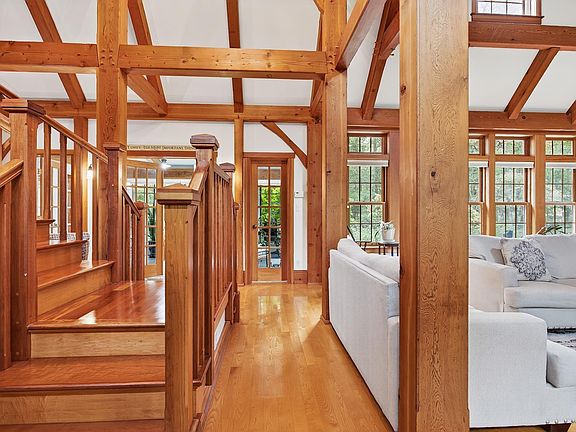 Welcome to 393 English Creek Road — a rare fusion of masterful craftsmanship, expansive living, and serene privacy, all set on 7.4 picturesque acres in the heart of Port Republic, NJ.  This exceptional custom post-and-beam timber frame home is a testament to quality and thoughtful design. Built with hand-selected New Hampshire timber and premium materials, it offers timeless beauty and enduring strength for those who appreciate excellence and tranquility.  From the moment you arrive, a classic slate entryway and covered front porch greet you with elegance, hinting at the artistry found throughout the home. Tucked away from the road, the property is a secluded sanctuary surrounded by lush, professionally landscaped grounds. Mature plantings provide vibrant color year-round, while a peaceful koi pond adds a calming focal point to the natural setting.  Inside, the 2,898-square-foot layout is both spacious and inviting. The first-floor primary suite offers comfort and convenience, while soaring 18-foot ceilings and an open-concept design create an airy, welcoming atmosphere. Rich hardwood floors flow through the main living areas, anchored by a striking gas fireplace that adds warmth and ambiance.  The chef’s kitchen is a dream come true, featuring granite countertops, custom cabinetry, and an oversized pantry for abundant storage. A sun-drenched four-season room seamlessly connects indoor and outdoor living, while dedicated spaces for crafting, meditation, and gardening—including an attached greenhouse and flower potting room—invite creativity and relaxation.  Efficiency meets comfort with geothermal heated floors throughout the home and in the oversized, heated two-car garage, which also includes a central vacuum system. The full-height basement offers endless possibilities—perfect for a wine cellar, home gym, entertainment lounge, or studio.  Step outside to a slate patio designed for entertaining and unwinding. Whether you're hosting a summer barbecue or enjoying a quiet evening by the firepit under the stars, this outdoor space is a natural extension of the home’s charm.  Exciting possibilities await—with potential for agricultural zoning (subject to township approval), the property could support hobby farming, gardening, small-scale livestock, or even a pole barn. Buyers are encouraged to verify zoning options with the township to explore these opportunities.  Located in the scenic and close-knit community of Port Republic, this home offers the best of rural living with coastal convenience. Nestled along the Mullica River, the area is known for its natural beauty, top-rated schools, and peaceful lifestyle. With quiet roads, no traffic lights, and abundant green space, it’s a place where life slows down and quality of life flourishes—all just a short drive from beaches, marinas, Atlantic City, and major highways.  Whether you're searching for a forever home, a private retreat, or a lifestyle that embraces nature and space, 393 English Creek Road is a rare opportunity to own something truly special.  Schedule your private tour today and experience the magic of this one-of-a-kind property for yourself.