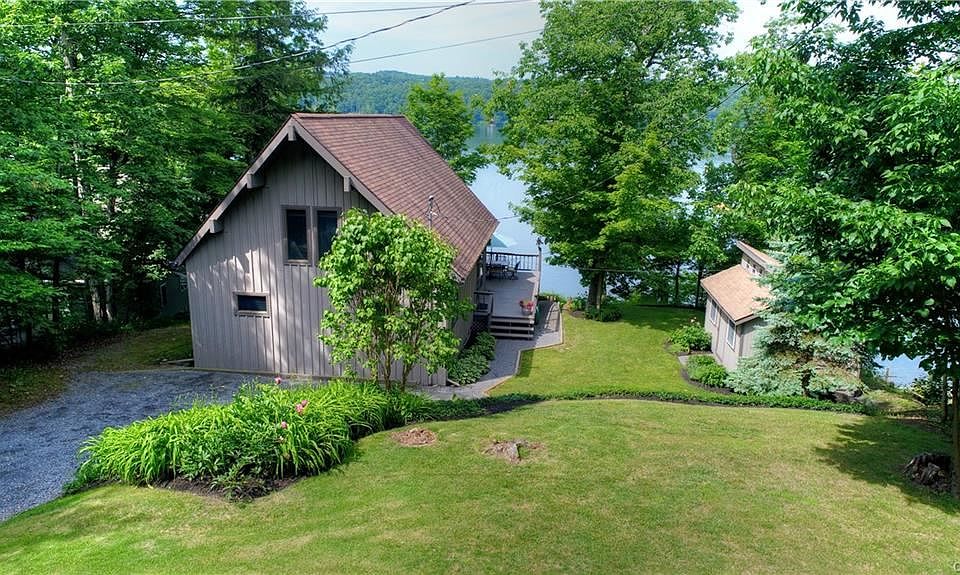Right out of a magazine! This private, east side lake retreat has been completely renovated and is turnkey. Boasting 3 bedrooms, 2 full ceramic tiled baths w/solid surface vanities, an open floor plan w/cathedral & bead board ceilings, built-ins, laundry, gas stove and split heater wall unit for chilly evenings and air-conditioning for balmy days. The property offers stunning lakeviews, wonderful outdoor entertaining spaces, large deck, 122' of gorgeous developed waterfront, an outbuilding w/great potential for a bunkhouse. Furnishings included. Move right in and immediately enjoy the lake or take advantage of an incredible income generating opportunity.