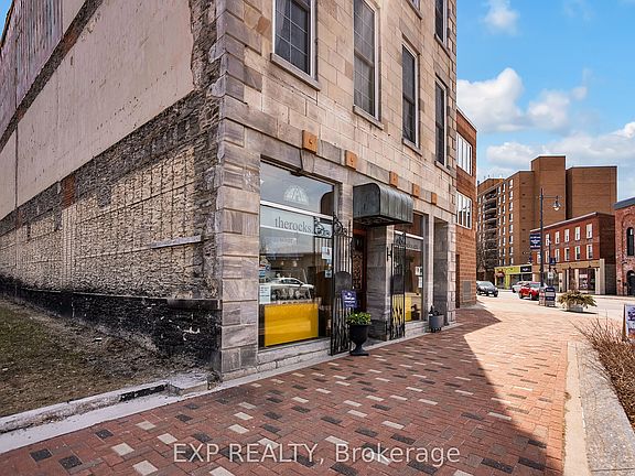 Discover unparalleled elegance in this 2-bedroom, 1-bath residential condo unit in the iconic Marble Hall, a striking 1857 landmark in downtown Belleville. This second-floor haven features soaring ceilings and massive windows that flood the space with natural light, showcasing stunning views of the Moira River and Belleville's historic double bowstring bridge. Inside, exposed stone walls add timeless character, paired with rich hardwood red mahogany floors flowing through the main living areas and elegant Japanese cherry and white elm flooring in the bedrooms, blending warmth and sophistication. Marble Hall's exterior, with its exquisite marble and limestone facade, reflects its storied past as a cornerstone of Belleville's vibrant core, where you're steps from trendy shops, entertainment, and dining. This condos prime location and unique charm make it perfect for short-term rental opportunities, such as Airbnb, attracting visitors to Belleville's bustling downtown. This residential condo is being sold with the main-floor commercial condo unit below, MLS# X12468737, providing a unique opportunity to live above your workplace or manage a thriving rental in a thriving community. Don't miss owning a piece of downtown Bellevilles history.
