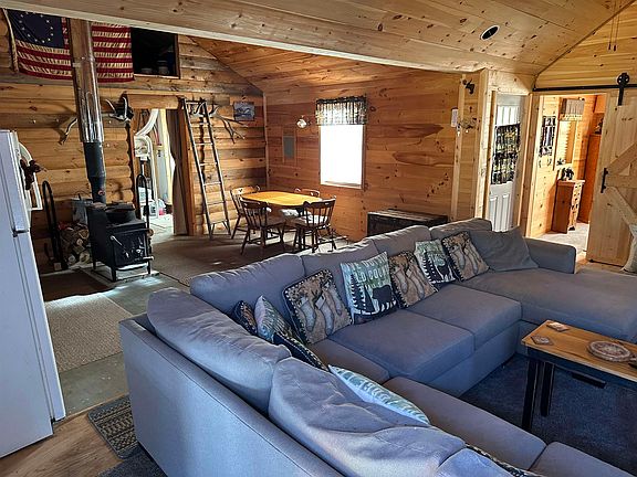 Escape to this private 13.8-acre getaway featuring a cozy three-room camp with everything you need for comfortable off-grid living. The camp includes a welcoming living area, a bunk room that sleeps four to six people, and a 3/4 bathroom. Two water holding tanks in the attic provide enough water for two people to shower for a week, easily refillable from the dug well when needed. A large storage shed offers plenty of room for your toys and tools, also included is a fully functional camper protected under a wooden structure providing you with extra living and sleeping quarters. A pickup with a plow is also included for plowing the driveway making it year-round access. Power is supplied by a dependable military-grade generator, the camp is heated with a wood stove and propane heater. property also has a 500-gallon holding tank. Direct trail access for both ATV and Snowmobiles. A peaceful, secluded setting with a nice view-perfect for relaxing weekends, hunting trips, or your own private retreat in the woods.
