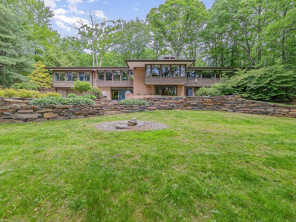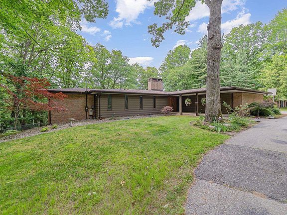 THIS Mid Century Modern home is a Crown Jewell home; A masterpiece, which is an Alden B Dow home with and by understudy Jack Feagley, who worked for Dow from 1962-1983 and became a part of a design movement that emerged in the Mid 20th Century. Simplicity and casual lifestyle, describes this era with clean straight lines and organic flowing forms to create Harmony & Balance. You will find this GEM just minutes from the City located west off Meridian Rd and nestled in Hiawatha Hills subdivision. Home is situated in the woods with 150' of riverfront on the Chippewa River. Enter the front double entry doors of this stunning property to a floor to ceiling double sided brick gas fireplace (Entry and Living room), and living rm is open to the Gourmet granite island kitchen, which also opens to formal dining room, with walls of massive windows (all through home) over this riverfront must-have setting. Main floors were updated with neutral ceramic tile. Kitchen offers glass tiled backsplash with island, custom maple cabinetry with plate rails, and beautiful stone tops, corner kitchen sink, Wolf cooktop, Wolf microwave, Wolf wall ovens, and double Sub Zero refridgerator/freezer. A spacious sun porch adorns the kitchen. Stairway to lower offers warm tones while unique lighting adorns this one-of-a-kind. Each owner has kept home in excellent condition to captivate the attention of buyers for this GEM. Lower level offers inviting family room & is open to the custom bar with pull out refridgerator and freezer drawers, & special lighting compliments the customized mirrored bar area. A SWEET theatre room with built in seating for 6 AND the Million Dollar Views of the yard w/fully heated concrete patio & in-ground 7x9 heated hot tub to entertain friends. Home offers timeless Blue Granite stone (dry stacked) ledges designed across this one acre wooded fenced yard complete with a fire-pit and lovely deck built out over the waters edge. Home has 4 bedrooms with 6 bedroom options.