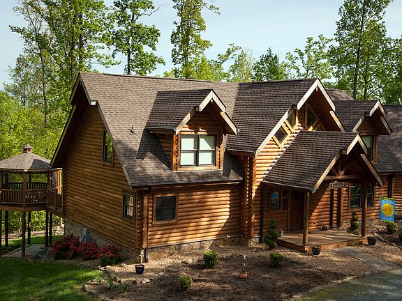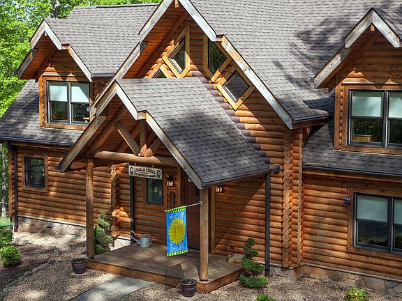 Even better views now! Custom built log home with a vista unlike any other. 22.22 acres w/gorgeous mountain views & privacy. This log home features high end quality finishes & materials throughout including hardwood floors from trees on property, granite counters, natural cherry cabinetry, 1st floor master suite, spacious great room kitchen combo w/floor to ceiling windows, an AWESOME rec room w/ media room, wet bar, pool room & exercise room w/rock climbing wall! You've got to see this home.