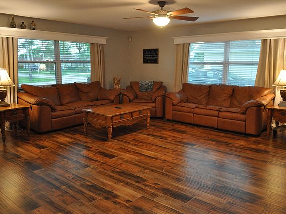 CBS 3 bedroom, 2 bath, 2 car garage. All flooring is hardwood, no carpet. NEW WINDOWS through out, NEW A/C and dishwasher. W/D 1 yr old. Huge 22 x 20 living room with a wood burning fireplace. Large bedrooms with walk ins and remodeled bathrooms. Large fenced yard with a fire pit and a covered screened patio. Room for a boat or RV on the concrete slab on the side of the home. Family friendly community with a park, volleyball, bball and a lake. Close to shopping and dining.