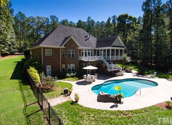 ACCEPTING BACK-UP OFFERS. BRICK RANCH with full finished BASEMENT on 5 ACRES. Private, natural trail to shared stocked POND & private DOCK. SALT WATER POOL, fenced yard/patio, deck, & screened porch. 1000 SF walk-in attic for storage or expansion. Commercial-size full house generator. HORSES allowed. Could add barn or guest house. Cary/Chatham w/ quick access to RTP, RDU, Cary & Raleigh, Chapel Hill, Durham & Jordan Lake. Low taxes/HOA/Utilities. Quick access to Tobacco Trail. Most door widths 36"