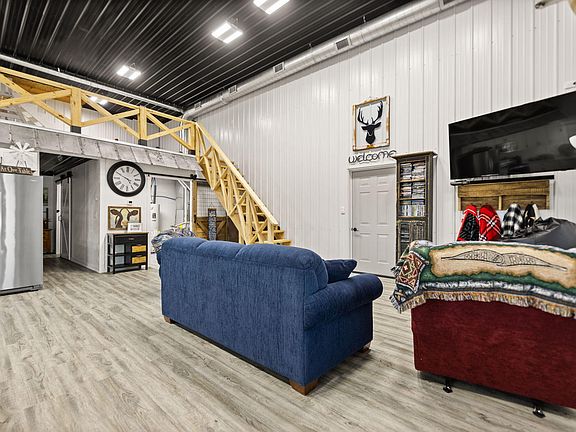 Custom barndominium built in 2022 featuring 1,680 sq. ft. of finished living space on a 0.67-acre lot. This home offers 2 bedrooms and 1 full bath with one bedroom on the main floor and a loft bedroom with space for multiple beds, accommodating up to 12 guests. The third floor is spray-foamed and partially floored, providing potential for an additional 480 sq. ft. of living space. The attached 14x40 garage is also spray-foamed for efficiency. Comfort is provided by a heat pump for cooling and a propane floor furnace with pellet stove backup. Most furnishings remain, along with kitchen appliances, washer, and dryer. Launch your boat just 3 miles away at the end of Park Forest Rd and enjoy quick access across the lake to Conley Bottom Marina. City water, septic tank, and excellent lake-area location approximately 10-12 miles to Wolf Creek Marina by car. A versatile property ideal as a primary home, lake retreat, or rental investment!